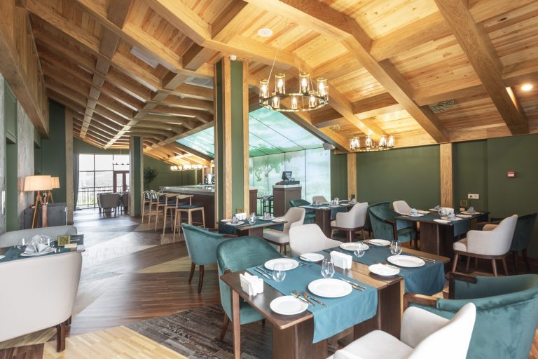 Расположенный на втором этаже отеля ресторан, отличается комфортностью и многофункциональностью. Для гостей доступны, как и внутреннее пространство, так и терраса с панорамным видом.